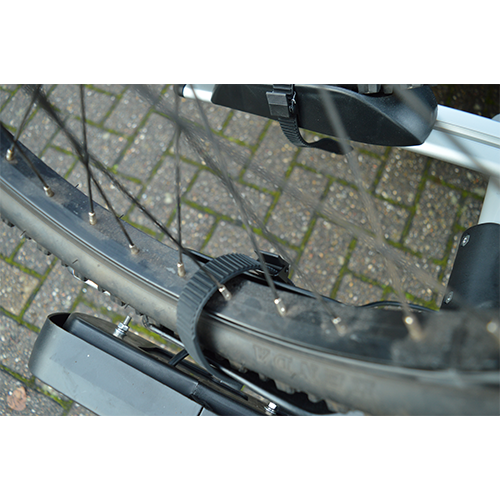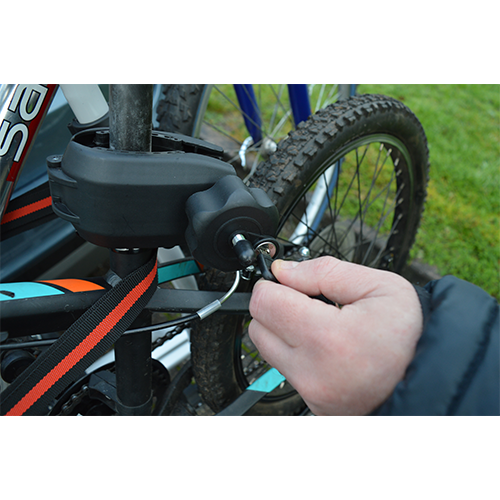- Lockable arms are provided to secure each bike to the support bar